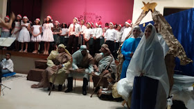 Mãe: E José subiu da Galiléia para Belém, procurando um lugar para levar Maria para dar á luz ao menino Jesus.