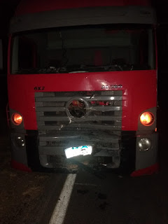 Um mossoroense de 56 anos era o motorista do caminhão VW/24.280 CRM 6×2, de cor vermelha, placas com inscrição de Mossoró/RN.